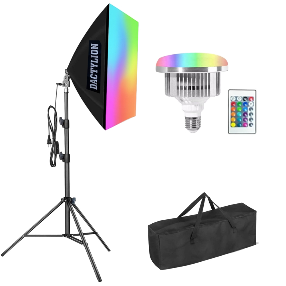 Daca iti doresti un control creativ mai mare asupra culorii si atmosferei din cadrele tale, acest kit softbox cu LED RGB de 45W este o alegere excelenta pentru proiecte foto si video moderne. Conceput pentru flexibilitate si portabilitate, sistemul iti permite sa obtii atat lumina alba clasica, cat si efecte colorate dinamice, direct din telecomanda inclusa.