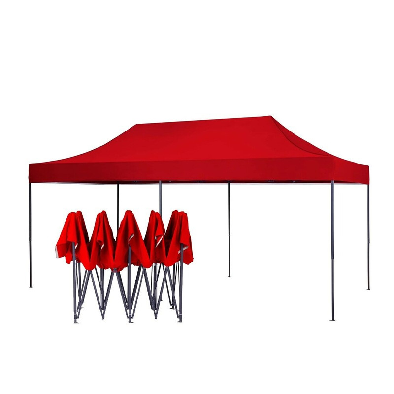 Cort pliabil evenimente 3x6 m, culori: alb, albastru, rosu - structura metalica solida, prelata impermeabila Oxford 700D, protectie UV, picioare telescopice, deschidere tip armonica, pentru gradina, terasa si exterior