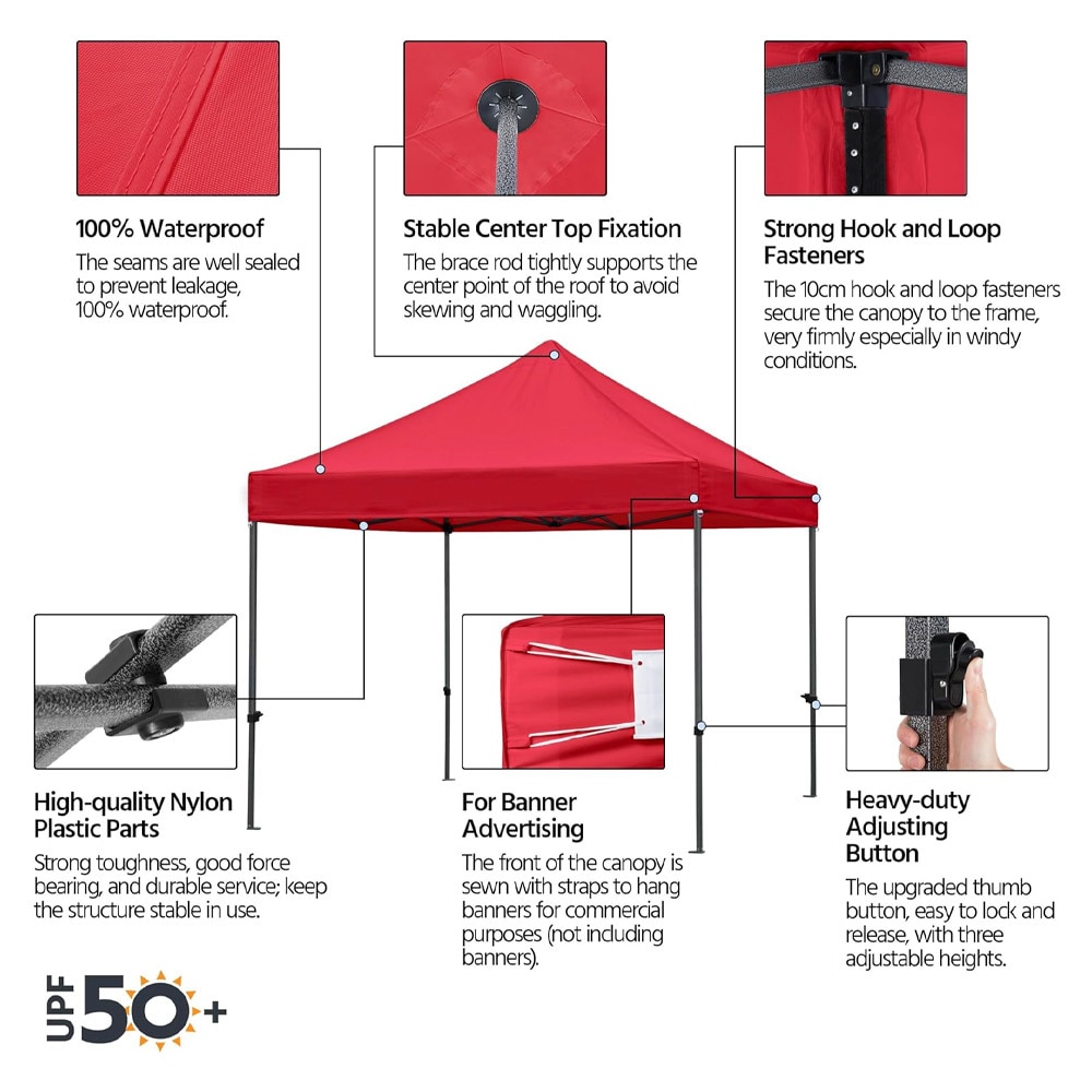 Este o solutie practica pentru gradina, terasa, curte, targuri, camping sau evenimente temporare, fiind usor de manevrat si adaptat diferitelor situatii.