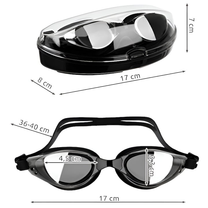 Acest set complet de ochelari de inot este conceput pentru a oferi confort, protectie si vizibilitate optima in timpul inotului sau scufundarilor recreative. Este alegerea potrivita atat pentru inotatori amatori, cat si pentru utilizare frecventa la piscina sau in vacanta.