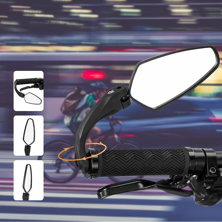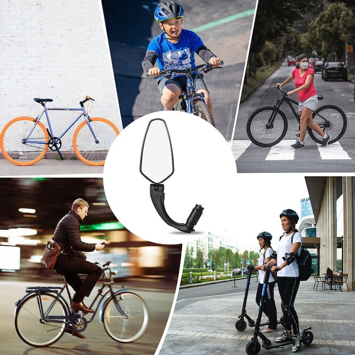 Oglinda retrovizoare pentru bicicleta, ajustabila, rotatie 360°, 11 x 6 cm, negru