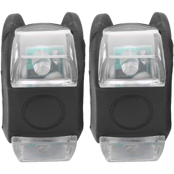 Set lumini LED pentru bicicleta din silicon, 2 bucati – lumina alba si rosie, 3 moduri de iluminare, impermeabile, prindere rapida, negru