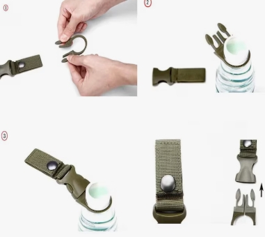 Inelul robust este ideal pentru sustinerea sticlelor sau a altor obiecte mici, iar sistemul de prindere permite utilizarea rapida in diverse situatii. Culoarea verde il face potrivit pentru echipamente tactice sau activitati in aer liber.