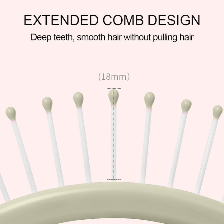 Perii flexibili cu vârfuri rotunjite masează scalpul și descurcă ușor părul, fără rupere sau deteriorare.
