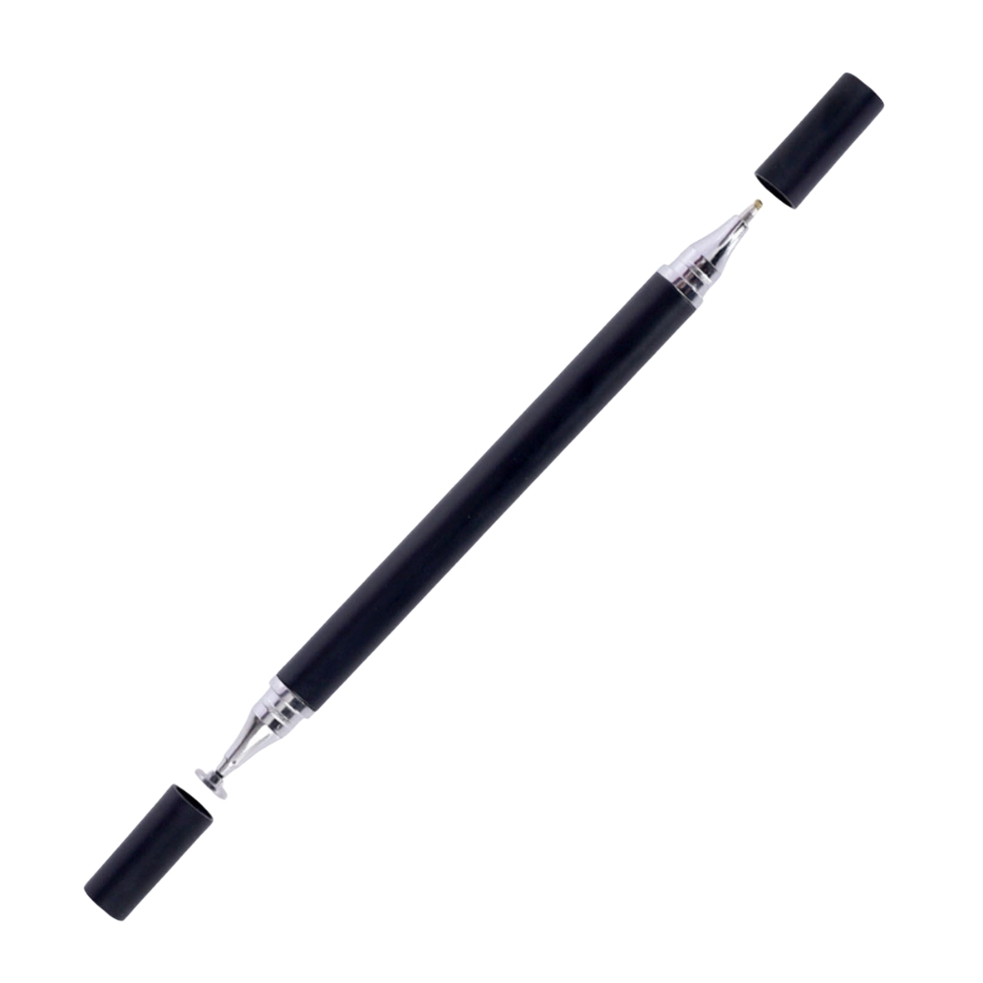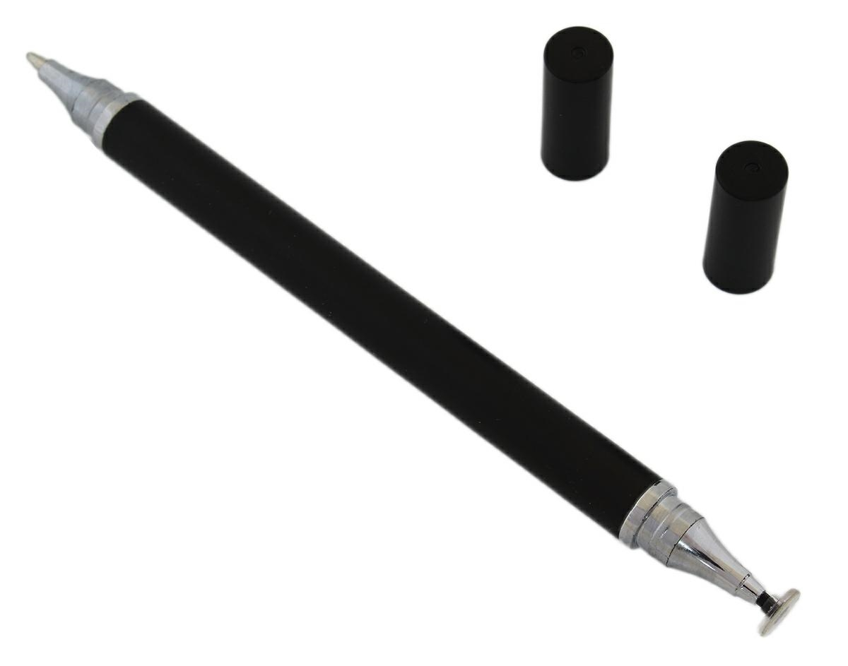 Stilou 2 in 1, tip stylus, pentru telefoane, tablete, ecrane tactile, varf metalic, disc de protectie, 14 cm, negru