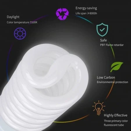 Surse de Lumina: 2 x Bec Fluorescent Spiralat 150W (total 300W), Soclu E27, 220V.