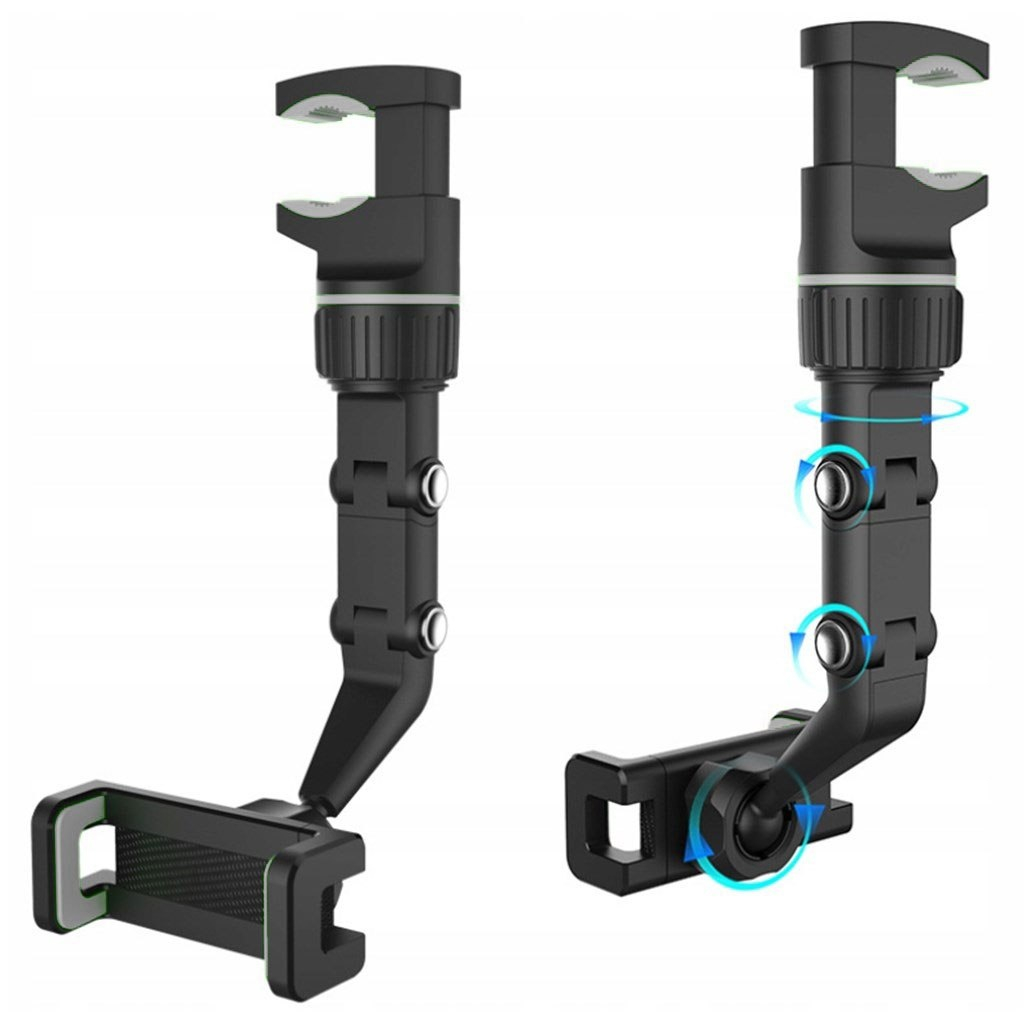 Suport auto pentru telefon, montare pe oglinda retrovizoare, latime reglabila 5-10 cm, rotativ 360°, negru