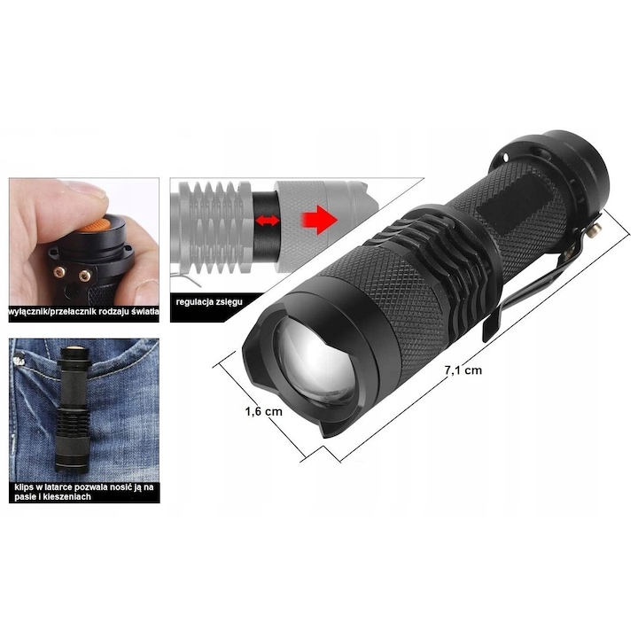 Lanterna tactica cu functie ZOOM (1 baterie AA – neinclusa)