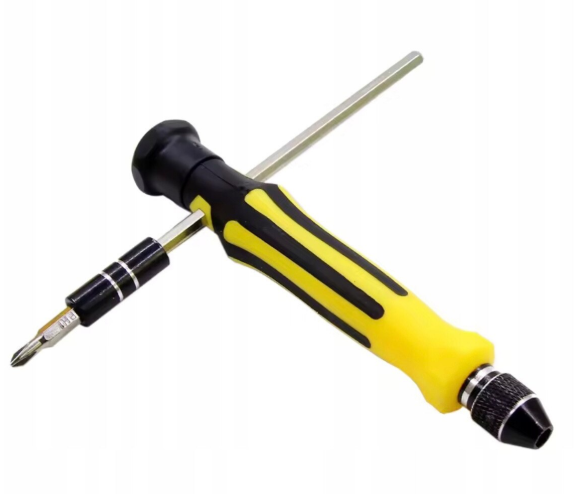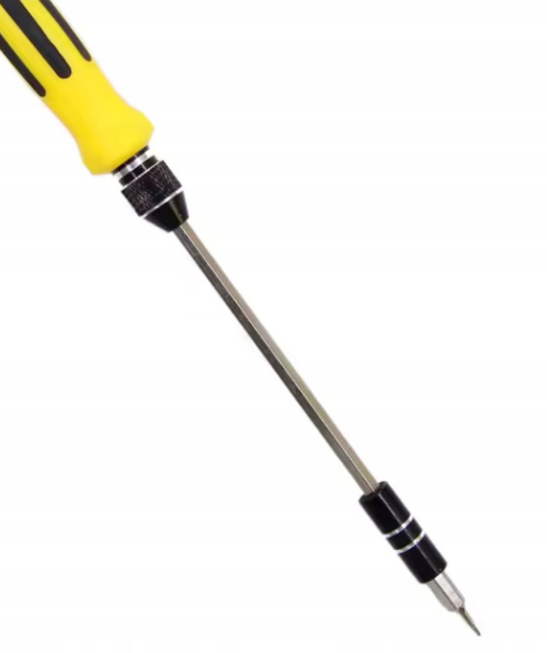 Manerul ergonomic, in culoare galbena, ofera prindere sigura si control precis in timpul utilizarii. Tija de extensie inclusa permite accesul in spatii inguste sau zone greu accesibile, facilitand interventiile in carcase, echipamente electronice sau dispozitive compacte.
