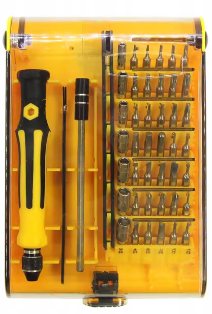 Setul de surubelnita multifunctionala cu 42 capete este conceput pentru lucrari de precizie in domeniul electronic, IT, reparatii electrocasnice sau dispozitive mobile. Include o gama variata de biti compatibili cu cele mai frecvente tipuri de suruburi, fiind potrivit pentru utilizare profesionala sau hobby.