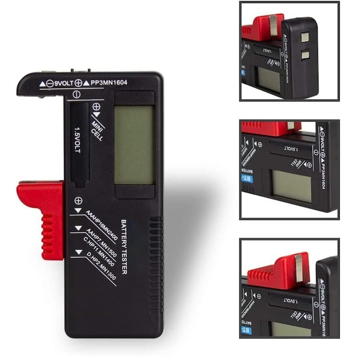 Compatibil cu o gama larga de baterii, inclusiv AAA, AA, C, D, baterii tip buton si baterii de 9V (R9), testerul este ideal pentru dispozitive uzuale precum telecomenzi, jucarii, lanterne, ceasuri, aparate foto sau accesorii electronice. Functionarea este simpla si intuitiva, fara setari suplimentare, ceea ce il face usor de utilizat de orice persoana.