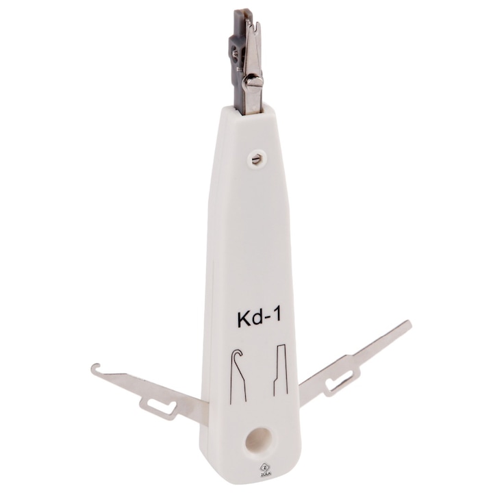 Cleste de sertizat LSA cu cutit KRONE si senzor, pentru conectarea cablurilor 0.35 mm si 0.7 mm, plastic + metal, alb, 18 cm – instrument profesional pentru electricieni si tehnicieni IT