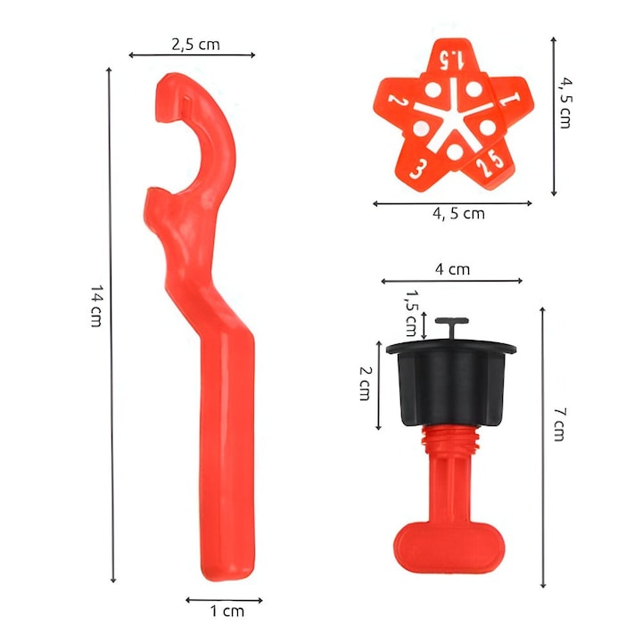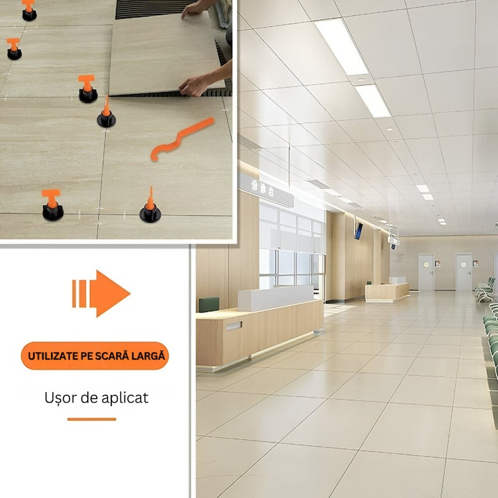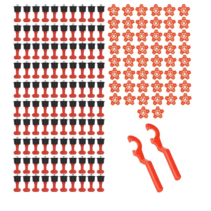 Cele doua chei incluse ajuta la strangerea controlata si uniforma a tijelor, mentinand placile fixe pana la intarirea adezivului. Materialele rezistente asigura stabilitate si precizie, iar designul sistemului faciliteaza un flux de lucru rapid si eficient pentru renovari sau placari complete.
