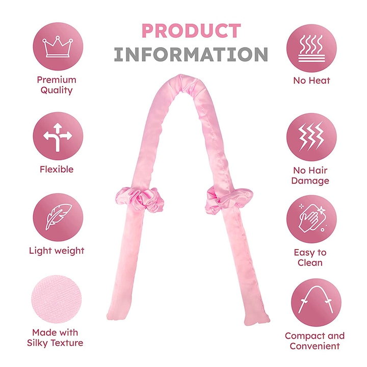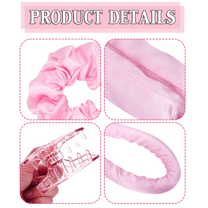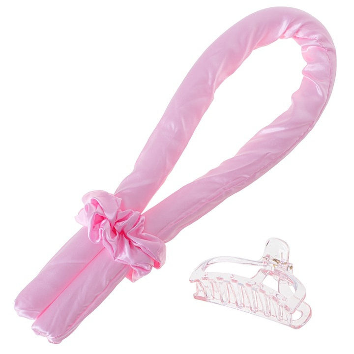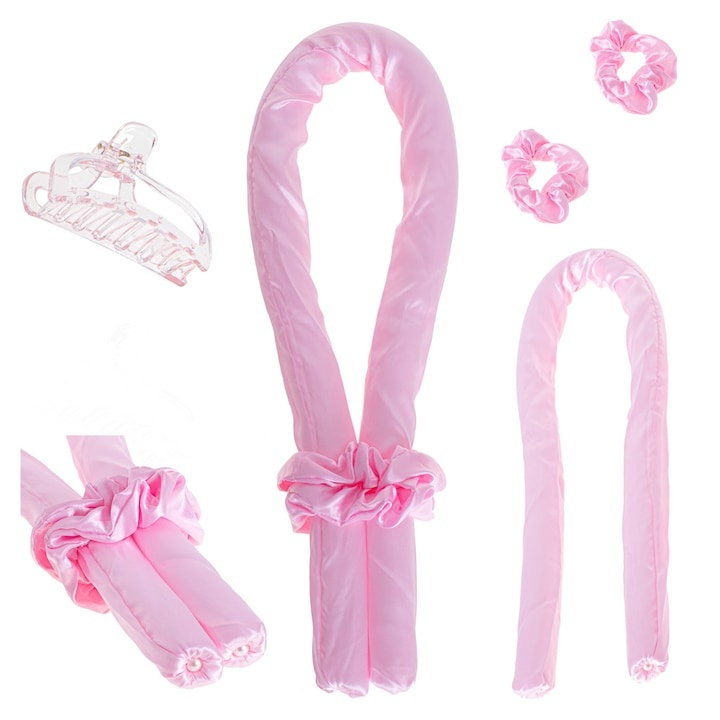 Set ondulator de par fara caldura, din spuma moale, accesorii incluse, roz – bucle uniforme si volum peste noapte, fara deteriorarea firului de par