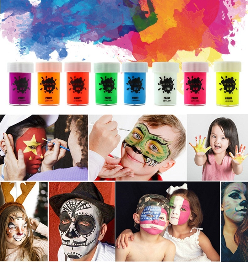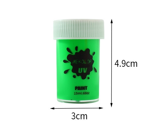 Pigmentul fluorescent creeaza un efect luminos puternic, vizibil in lumina UV, fiind perfect pentru petreceri, festivaluri, Halloween sau spectacole.